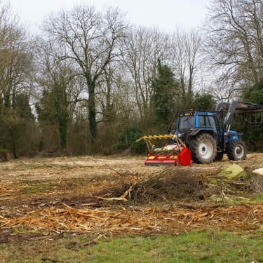 Scrub management within the forest or on wider more open areas we carry out with a tractor and mulcher reducing bramble, gorse, thorn and any other species required leaving a layer of organic material. Mulching is also a good way of breaking down the small branch wood of trees that have been harvested for there timber within the forest adding to the organic material on the forest floor for the next generation of trees and flora. We also use a tree shear mounted on a nine tone excavator to manage scrub and overgrown forest rides which enables us to stack the material for extraction if the site needs to be cleared from arisings.